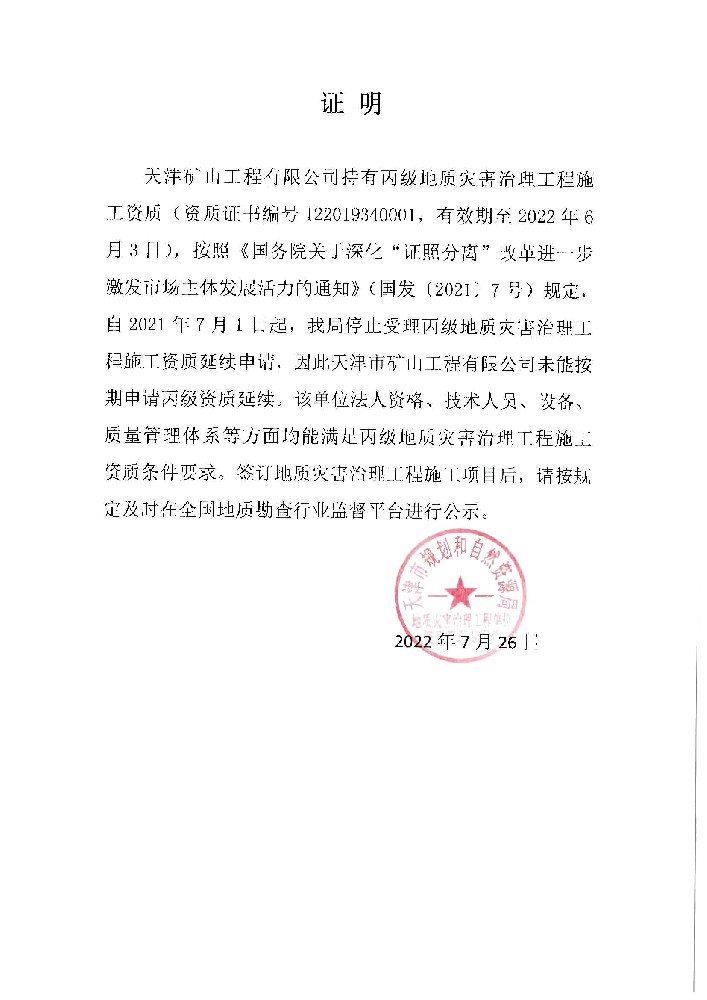 天津礦山工程有限公司(以下簡稱公司)始建于1965年,隸屬中國建材集團有限公司,是從事礦山總承包、礦山開采運營、礦山設計與咨詢、土石方爆破、生態恢復治理、鋼結構制作安裝、機電設備安裝以及工程測量的專業化礦山施工企業和礦山開采運營總承包服務商。具備礦山總承包和爆破雙一級資質。 公司始建于1965年,總部位于天津市···